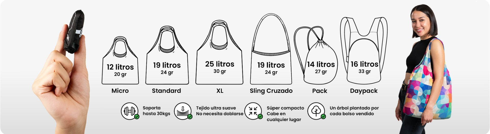 Las Nanobags son bolsas premium tan compactas que ni siquiera notarás que las llevas. No solo prácticamente desaparecen en tu bolsillo, sino que están disponibles en diversos modelos para satisfacer distintas necesidades de transporte. Ya sea en el gimnasio, de compras o viajando, las Nanobags te preparan sin esfuerzo para cualquier situación.