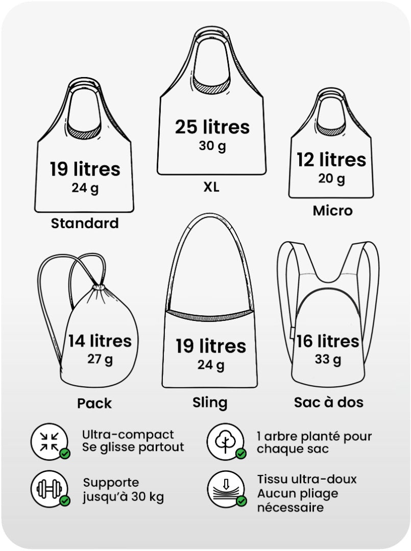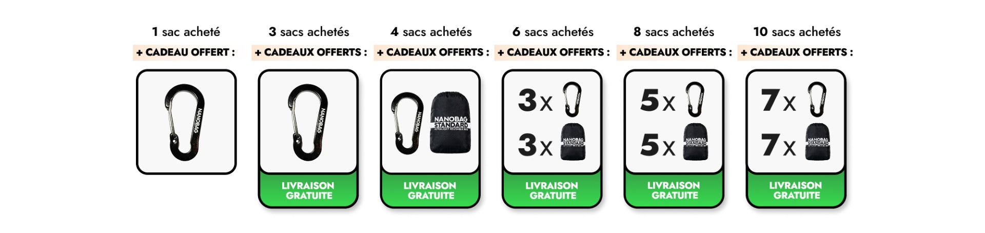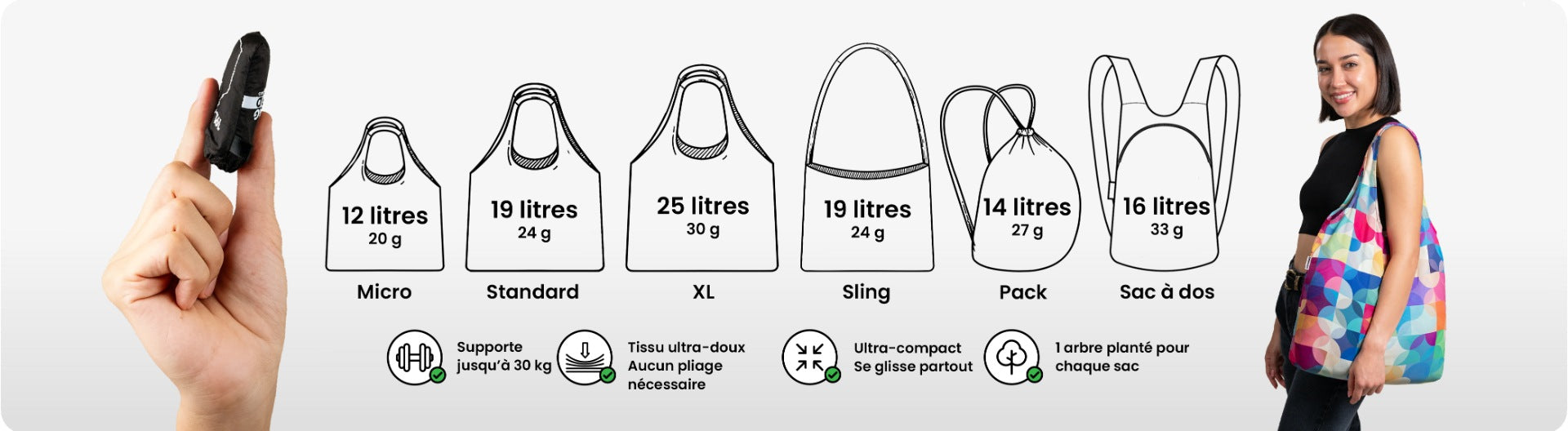 Les Nanobags sont des sacs haut de gamme si compacts que vous ne remarquerez même pas que vous les portez. Non seulement ils disparaissent presque dans votre poche, mais ils existent aussi en plusieurs modèles pour répondre à divers besoins. Que vous alliez à la salle, fassiez des courses ou voyagiez, les Nanobags sont toujours prêts à vous accompagner.